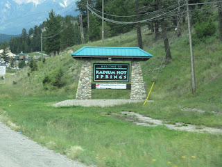 Op weg naar de camping komen we langs de Hot Springs. Het ziet er aangenaam uit. In het dorp, wat er vriendelijk uitziet, gaan we het visitor center binnen en vragen wat de beste plaats is om wild te zien. Er is hier rond het dorp een kudde van zo'n 150 Rocky Mountain Sheep en die laten zich zeer regelmatig zien. Zowel buiten het dorp, alsook soms erin. Dat klinkt goed. Ook een evt. beer zouden we kunnen zien, maar daar rekenen we maar niet op.